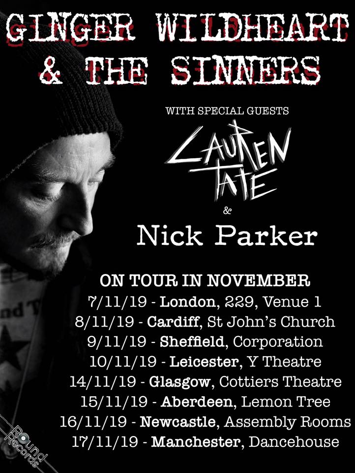 Ginger will be embarking on a November solo tour with his new band The Sinners! They’ll be playing a selection of Ginger’s back catalogue of solo material, and will be supported by Lauren Tate (Hands Off Gretel) and Nick Parker.